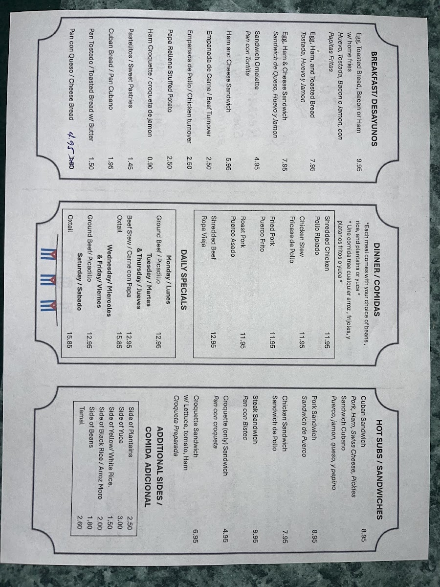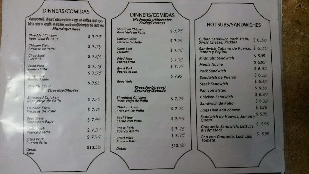 Pork, ham, swiss cheese, pickles (sandwich cubano de puerco, jamon y pepino).